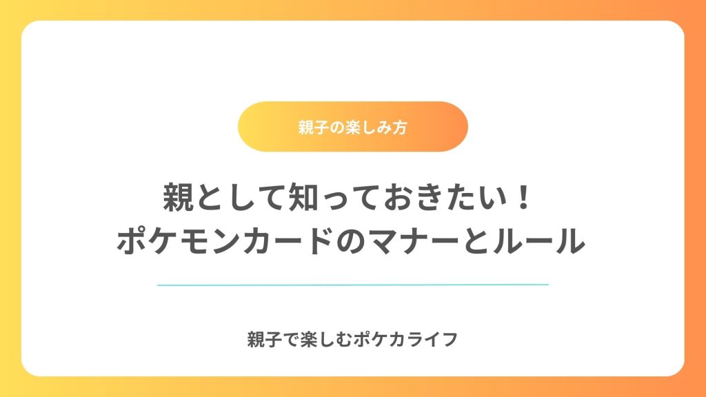 ポケモンカードは、ただのカードゲームではありません。楽しむためには、ルールやマナーを守ることが大切です。特に、親としてはお子さんが安心して楽しくプレイできるように、基本的なマナーを教えることが重要です。 今回は、親として知っておきたいポケ... -